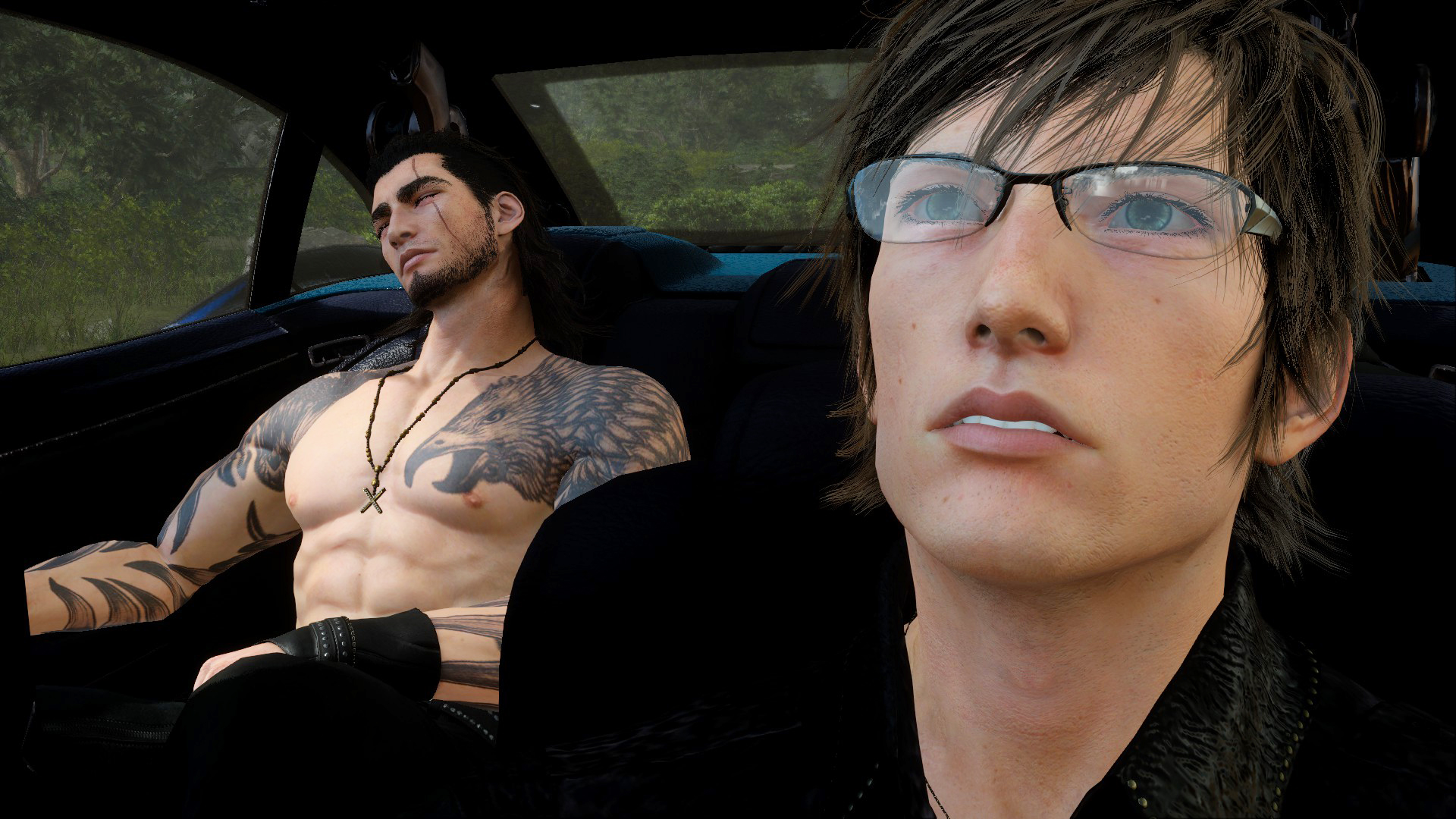 Ignis often check up on Gladio with rearview mirror. Seeing him sleeping in the car feels comforting