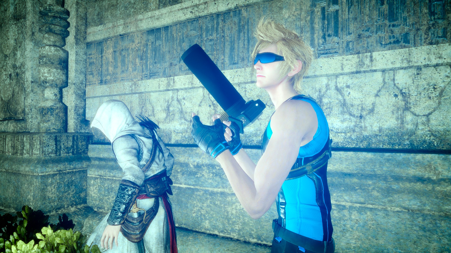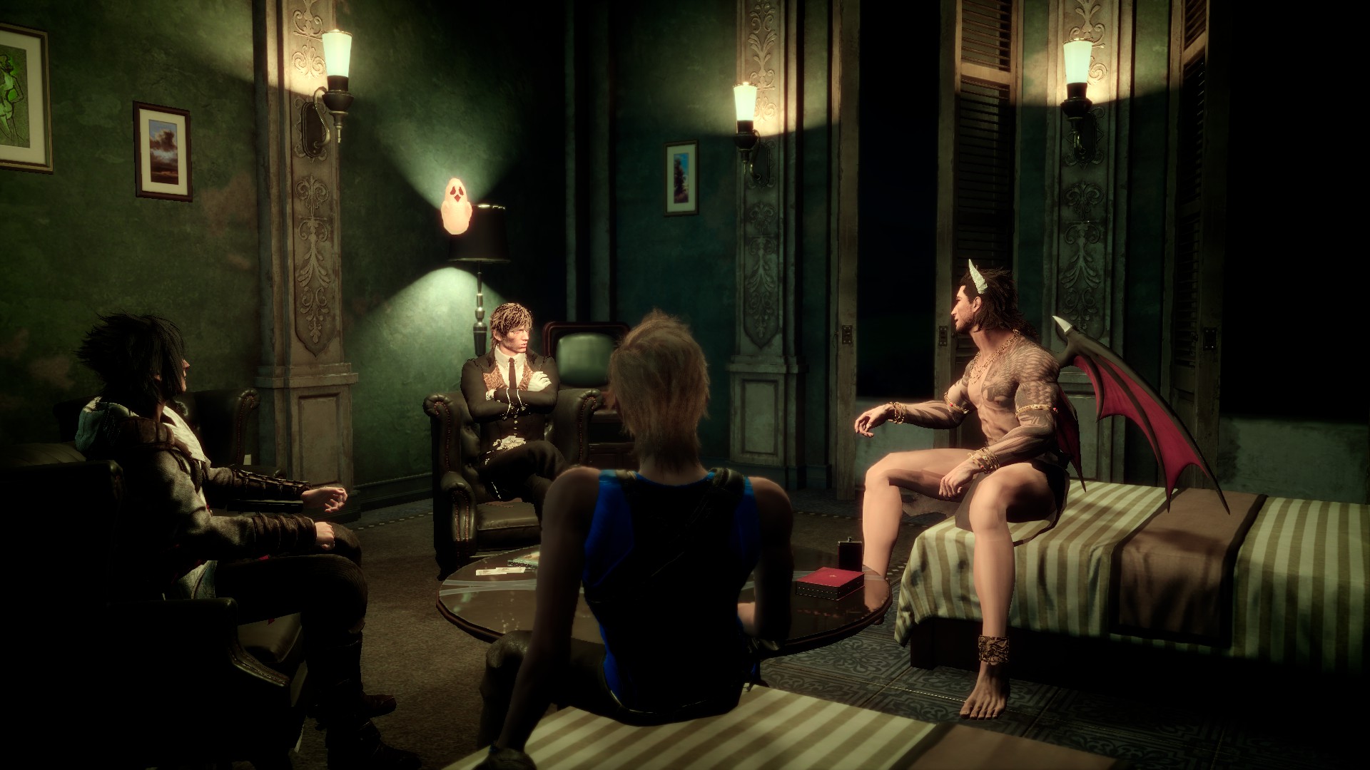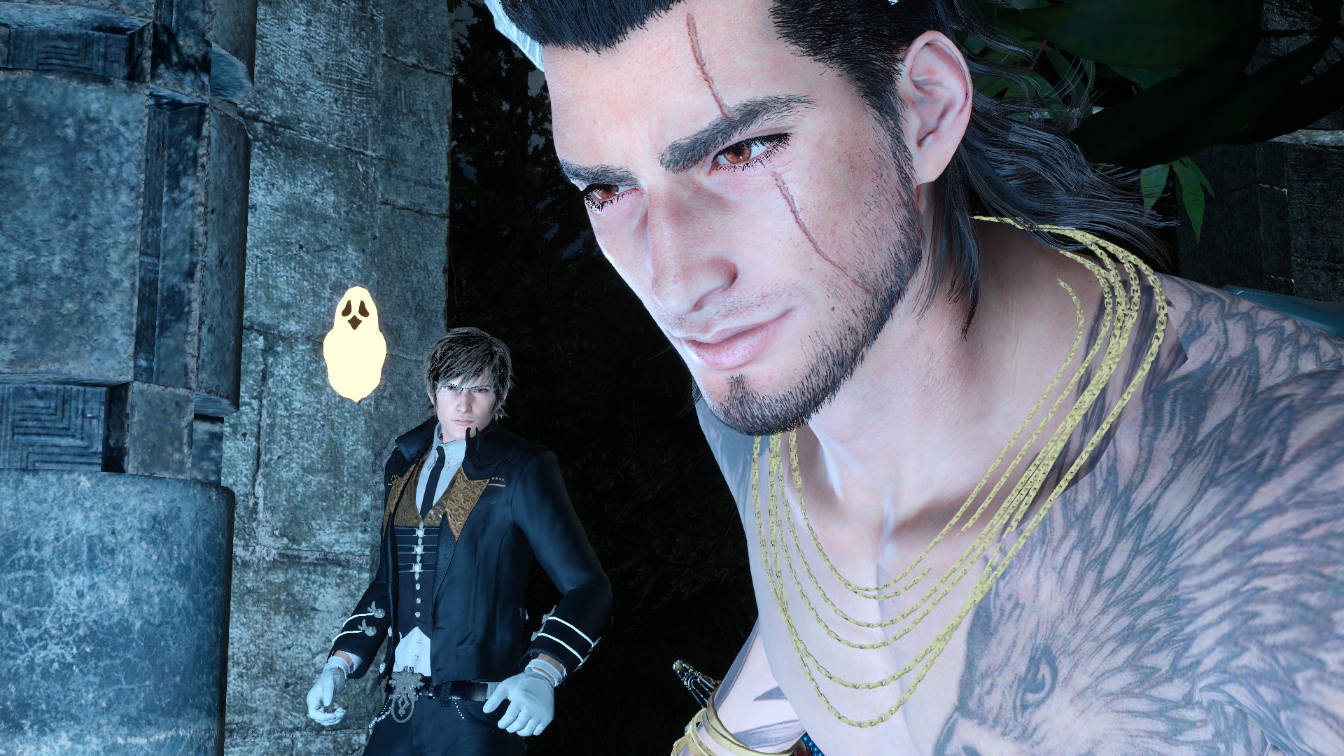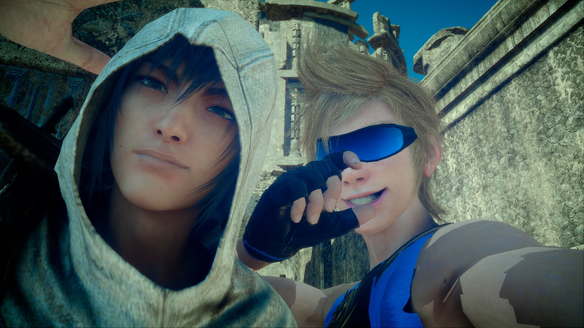 給普羅恩普特挑選了很cool的裝備,諾克特則是按照他的喜好以暗殺者裝扮登場(笑)