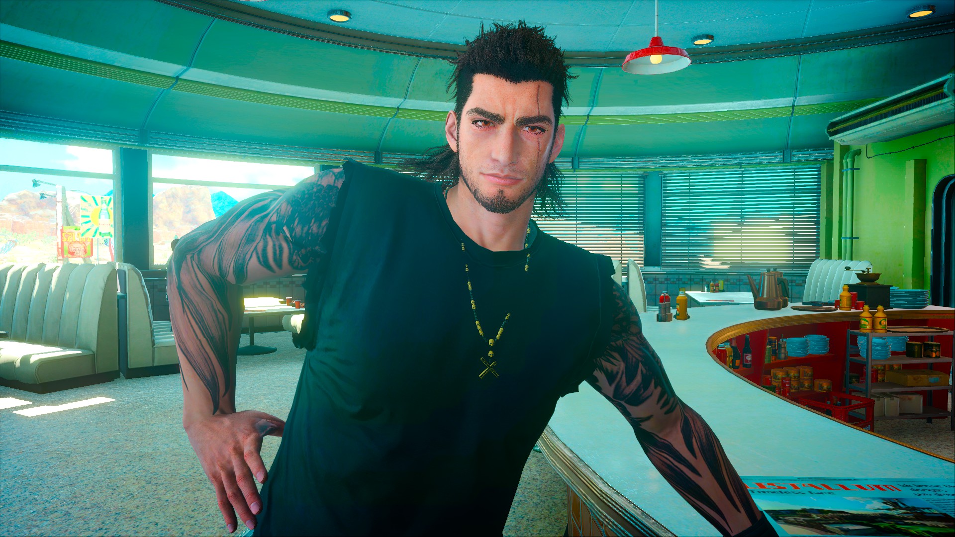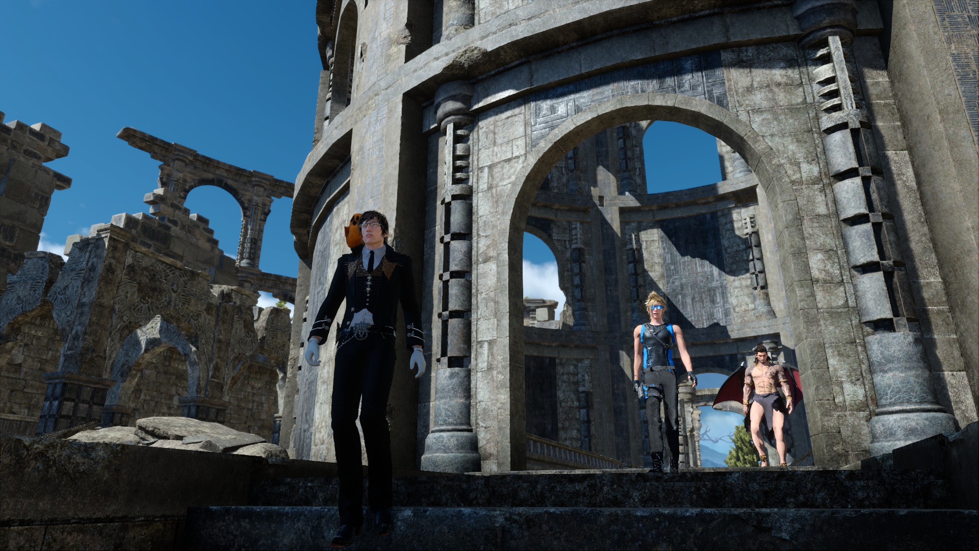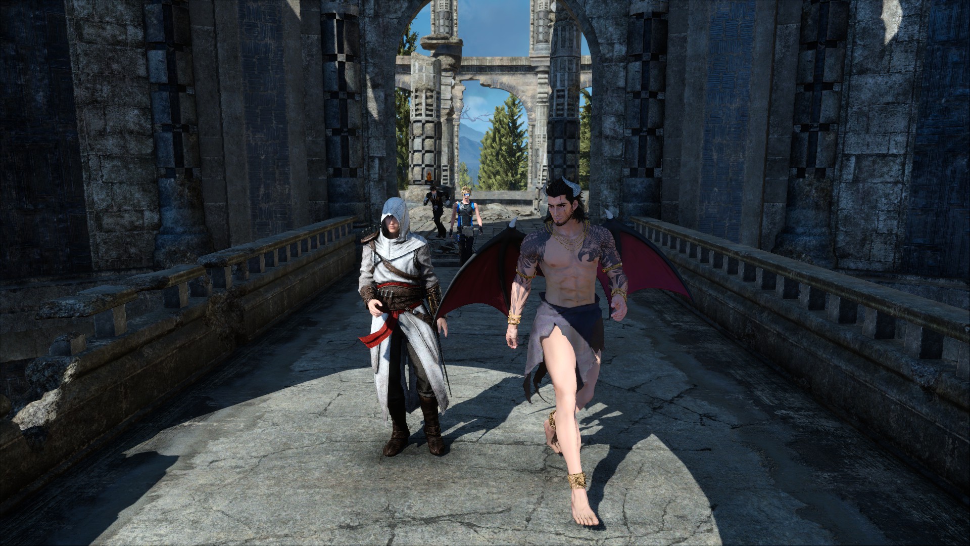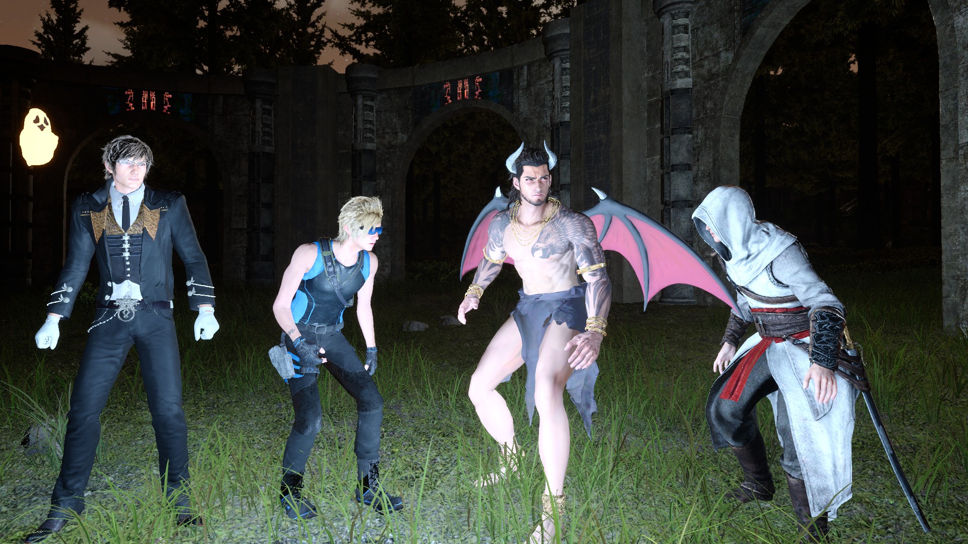 給普羅恩普特挑選了很cool的裝備,諾克特則是按照他的喜好以暗殺者裝扮登場(笑)