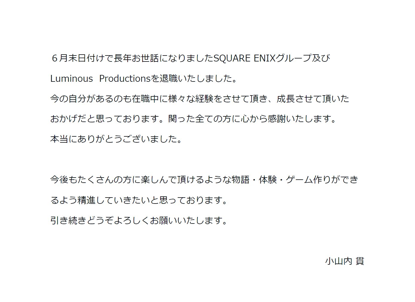 這位STAFF離開SQEX和Luminous了 OAO